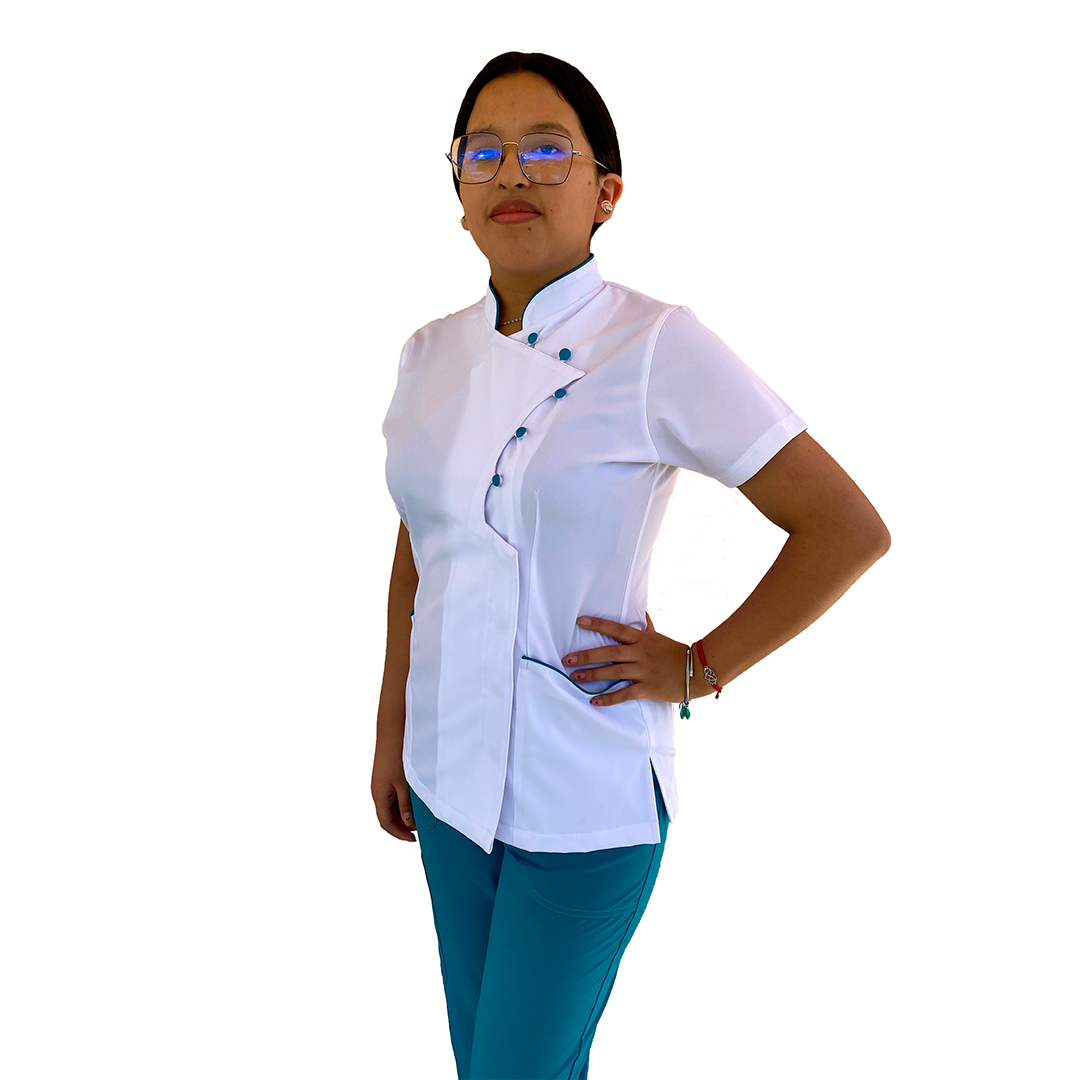 - Conjunto estético versátil y fresco. Proyecta pulcritud y profesionalismo en el trabajo estético.